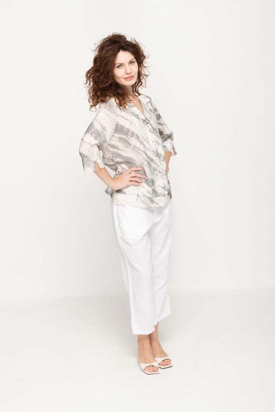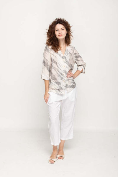Introducing our Casual 3/4 Sleeve Full Button Printed Women's Blouse, a versatile and stylish addition to your wardrobe. Crafted from a blend of polyester and spandex, this top offers both comfort and flexibility. The full button front and printed design add a touch of chic to your casual look.