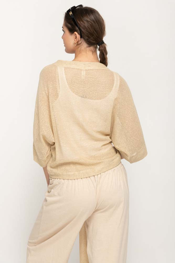 Women Casual Blouse in Wheat, V- Neck , Cross Twist Front with Batwing Sleeves