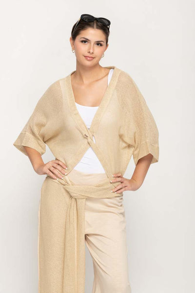 Women Casual Blouse in Wheat, V- Neck , Cross Twist Front  with Batwing Sleeves