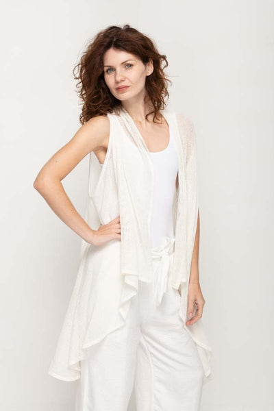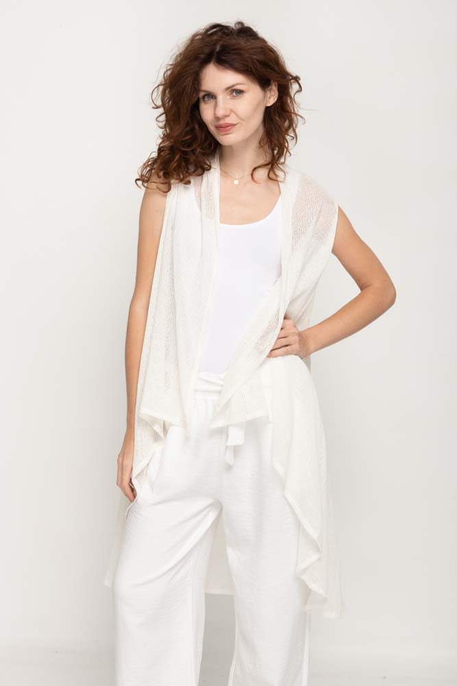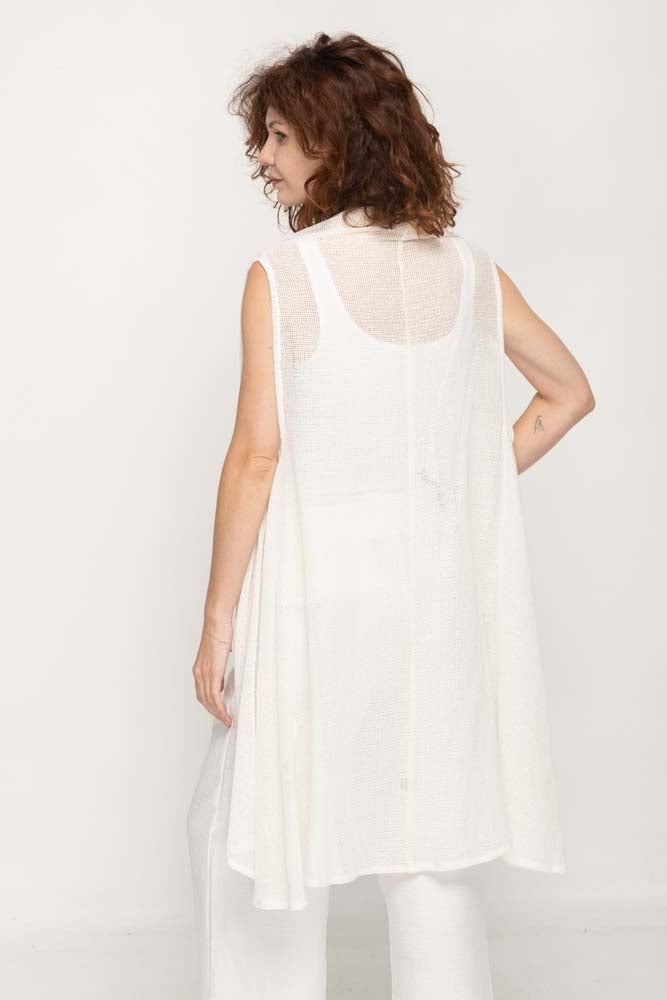 Women's Lightweight Long Vest Sleeveless Open Front Cardigan in Cream