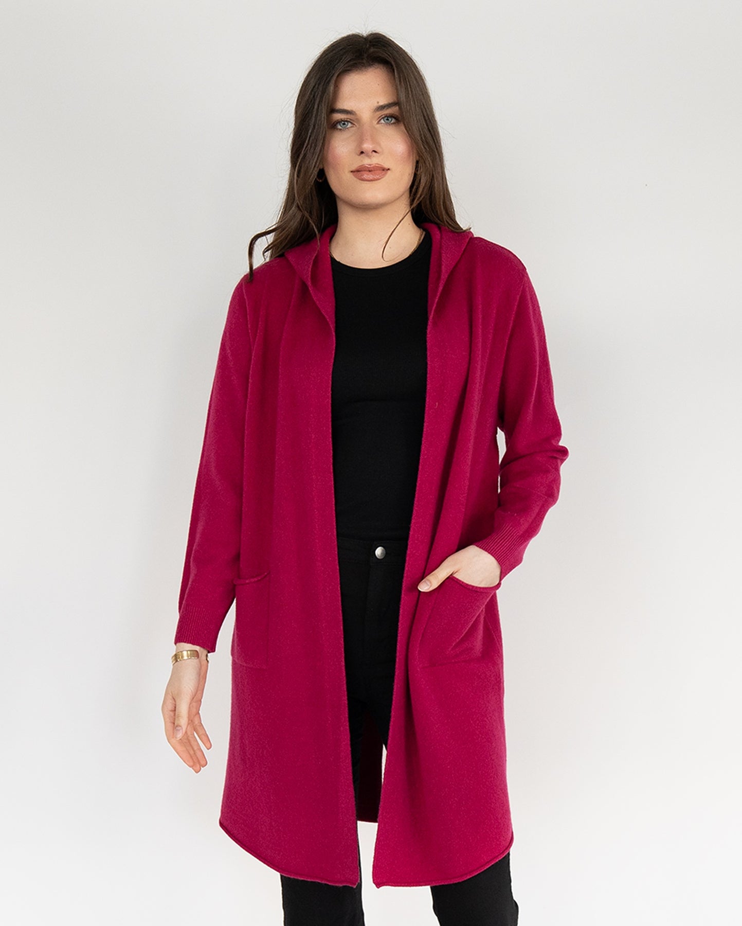 Women Knitted Hoodie Cardigan in Pink ,Open Front with Back Details