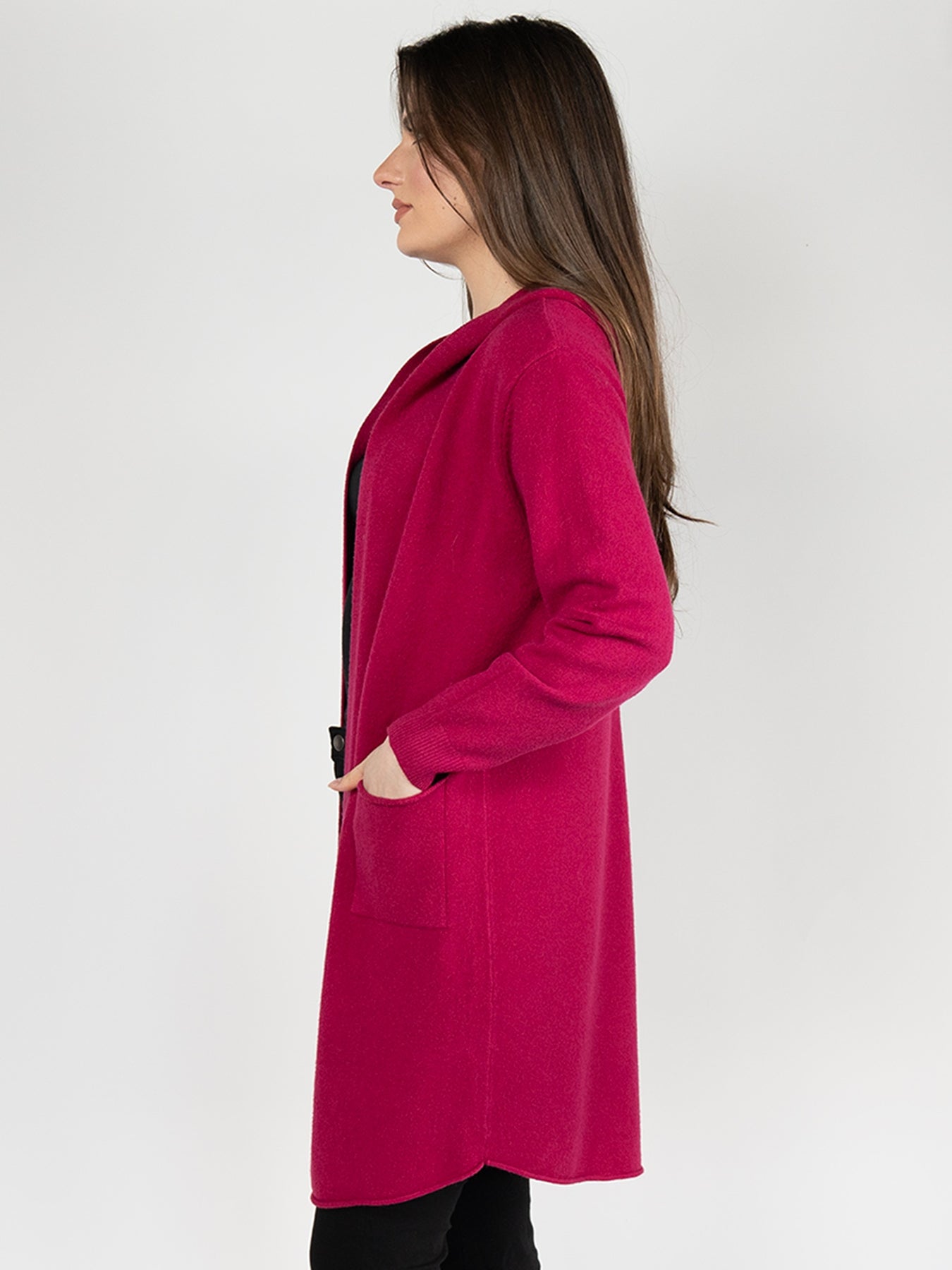Women  Knitted Hoodie Cardigan  in Pink ,Open Front with Back Details