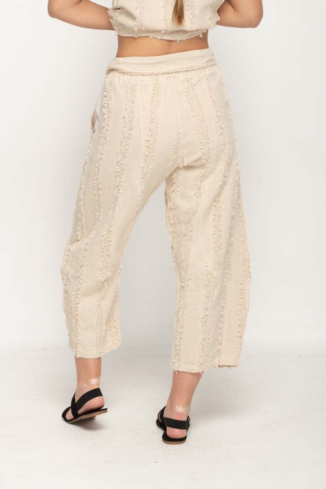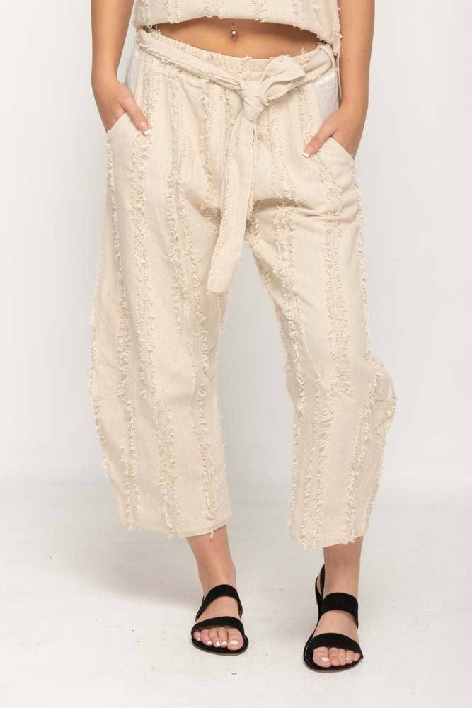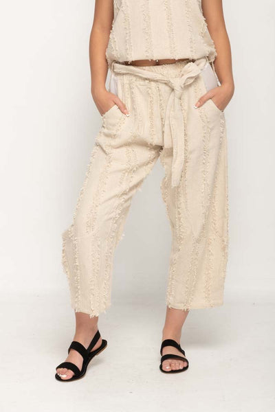 Women 's Casual Pant in natural color, Waisted Adjustable Tie Knot Loose Comfy Casual Trousers with Pocket , Uniquely Cotton Fabric