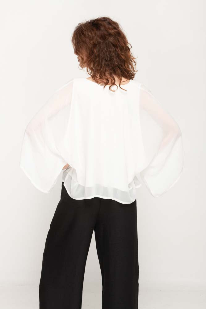 Wide Sleeves White Top with silver decorating sequins For Women