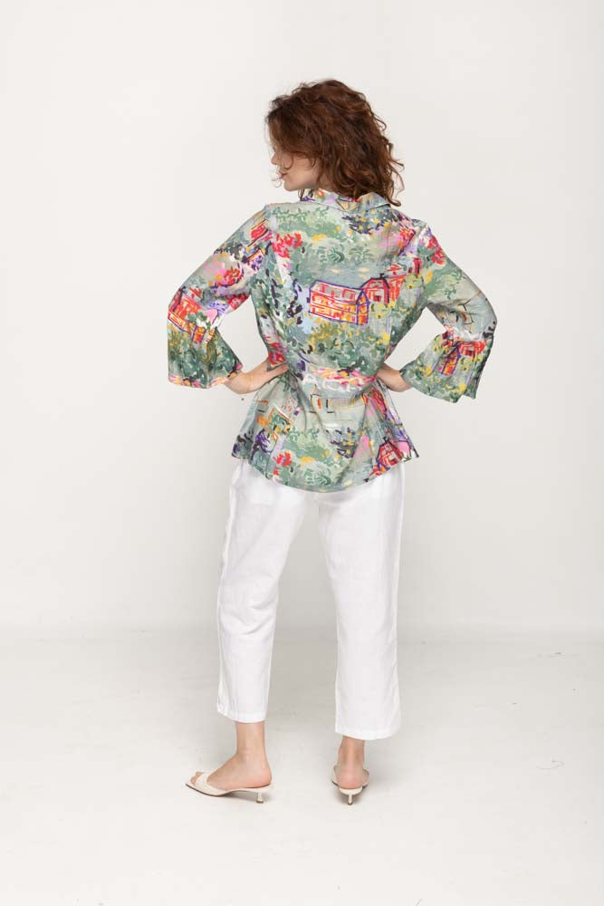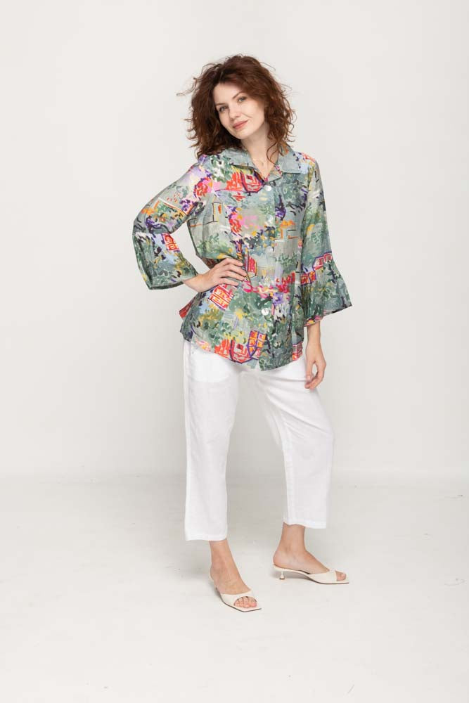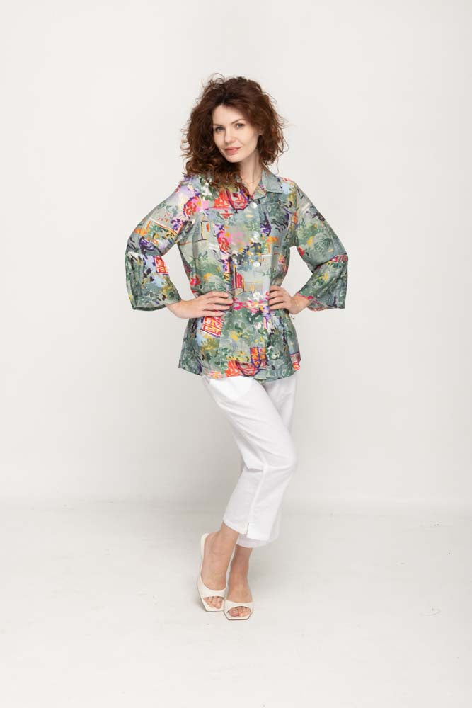 Introducing our Casual 3/4 Flared Sleeves, Full Button Multi- Colors Women Blouse, a versatile and stylish addition to your wardrobe. Crafted from a blend of polyester and spandex, this top offers both comfort and flexibility. The full button front and printed design add a touch of chic to your casual look.