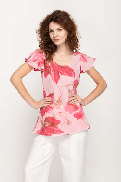 Introducing our Pinkish floral Printed Reversible top, a chic and versatile addition to your wardrobe. Crafted from 100% Poly Georgette, this top offers both comfort and a trendy look. The floral print adds a touch of elegance and charm to your ensemble, and the set includes a matching scarf for added style.