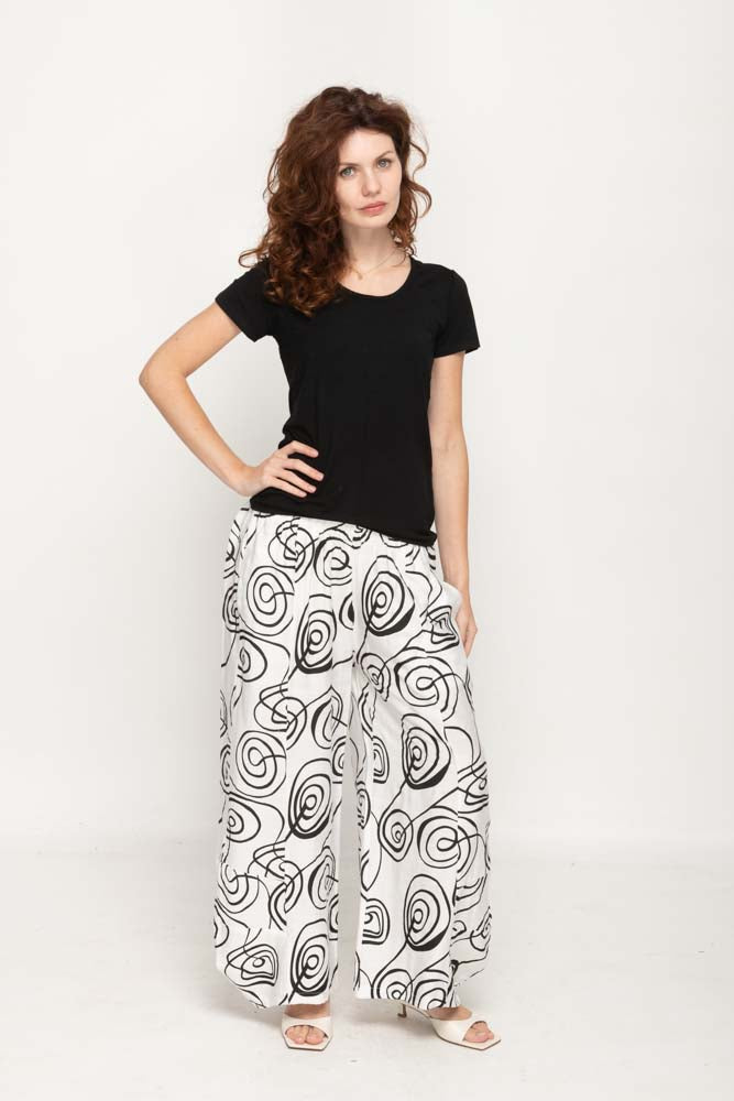 Introducing our Casual Wide Leg Printed Pants With Elastic Waist, a versatile and stylish addition to your wardrobe. Crafted from a blend of polyester and spandex, this pants offers both comfort and flexibility.