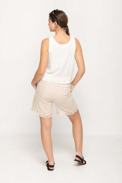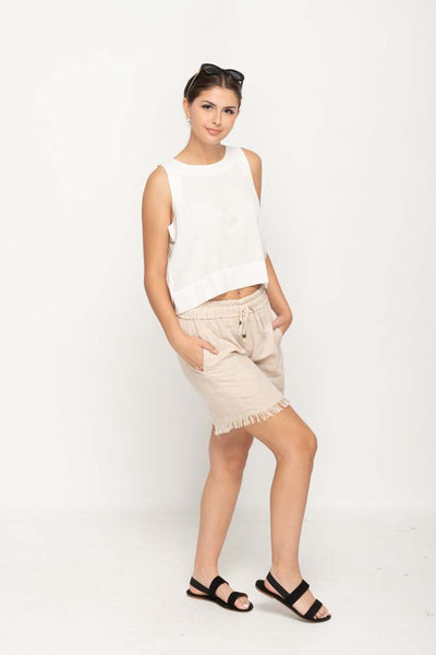 Women Cotton Cropped Tank Top in White with Crew Neck