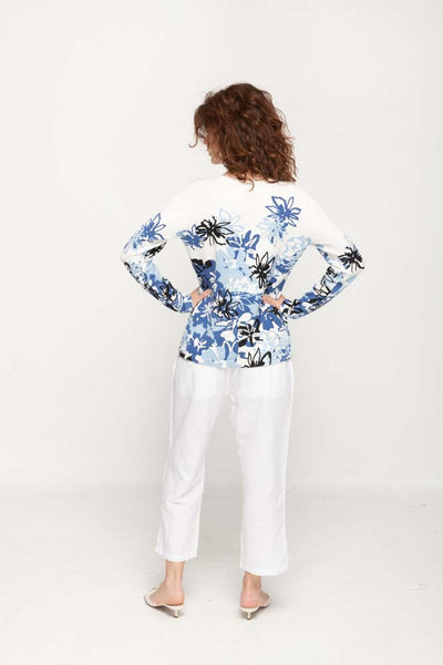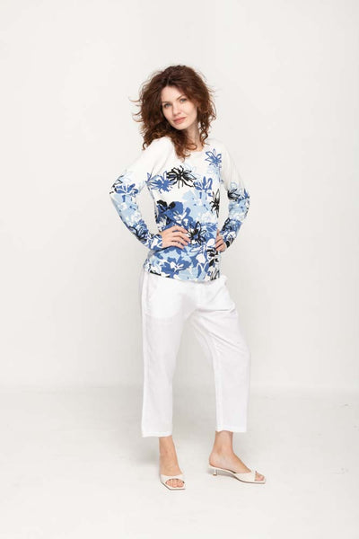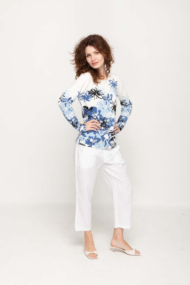 Introducing our Women's Blue Prints Full Sleeve , Crew Neck Knit Top , a versatile and stylish addition to your wardrobe. Crafted from a blend of polyester and viscose, this knitted top offers both comfort and a trendy look. The blue floral design adds vibrancy and flair to your ensemble.